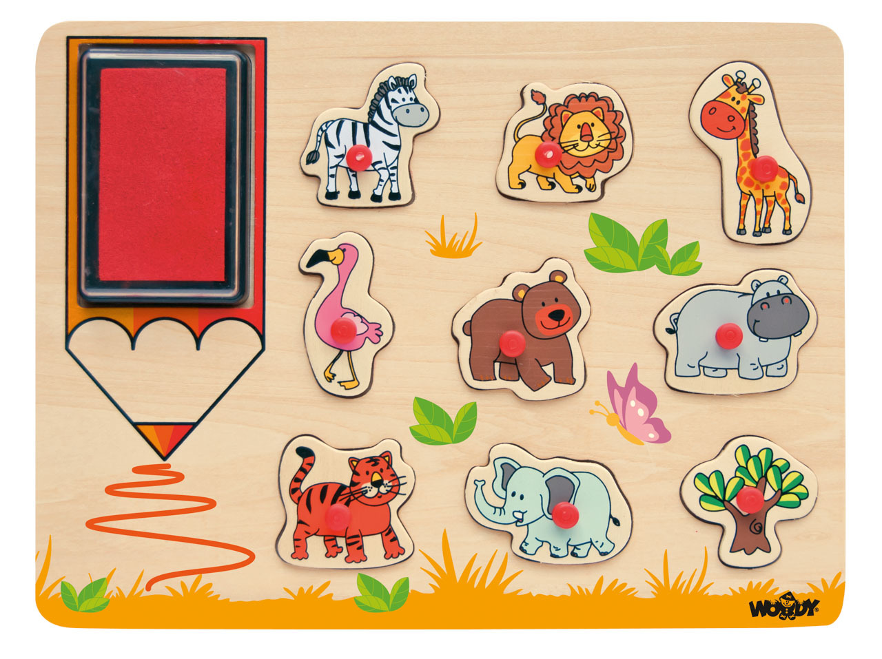 Kombinace razítek a puzzlí. Na spodní straně každého zvířátka je gumové tiskátko, pro které najdete přímo na ploše tohoto výrobku barevný polštářek. Děti si mohou vybarvovat natištěná zvířátka a skládat z nich celé obrázkové kompozice. Rozměr: 30 x 21 cm. Balení obsahuje 10ks. Věk: 3+ Certifikát:...
