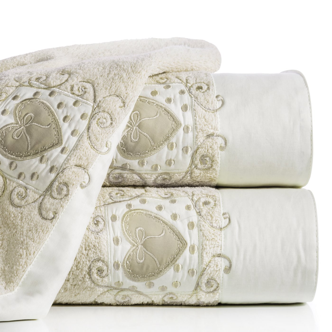 Bavlněný froté ručník s aplikací LOVING 50x90 cm, béžová, 500 gr Mybesthome