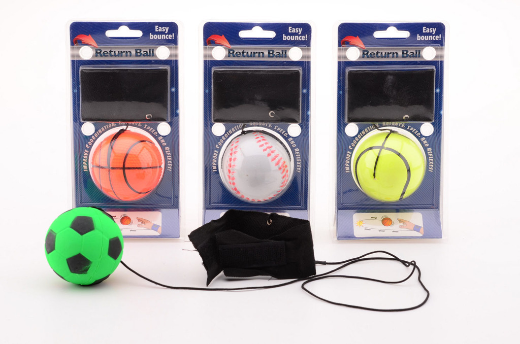 Míček na šňůrce s košem. Házej míčkem a trefuj se do koše. Různé designy míčků. číst celé