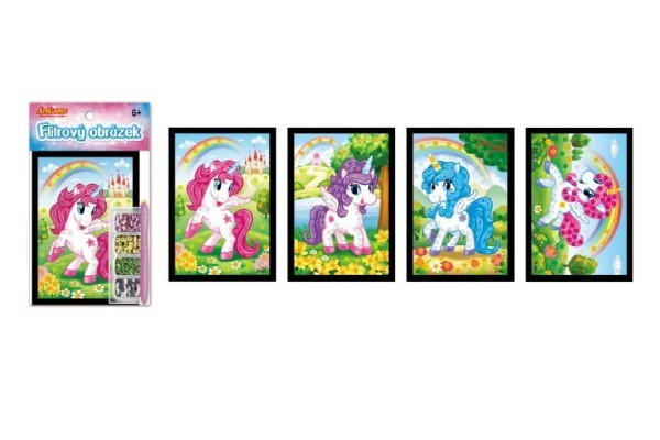 Flitrový obrázek jednorožec 10x16cm na kartě 24ks v boxu