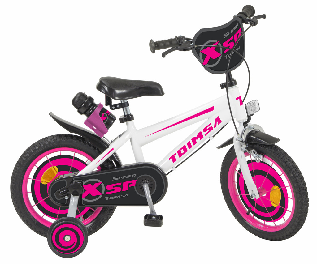 Dětské šlapací kolo Toimsa XSP bílo/černé 14". Vybavení kola - lakovaný rám, přední a zadní brzda, odrazka, nastavitelná řídítka a sedlo, přední a zadní blatník, odrazky, vzadu držák na láhev s lahví, odnímatelná stabilizační kolečka, nafukovací kola a kryt řetězu. Vhodné pro děti od čtyř do...