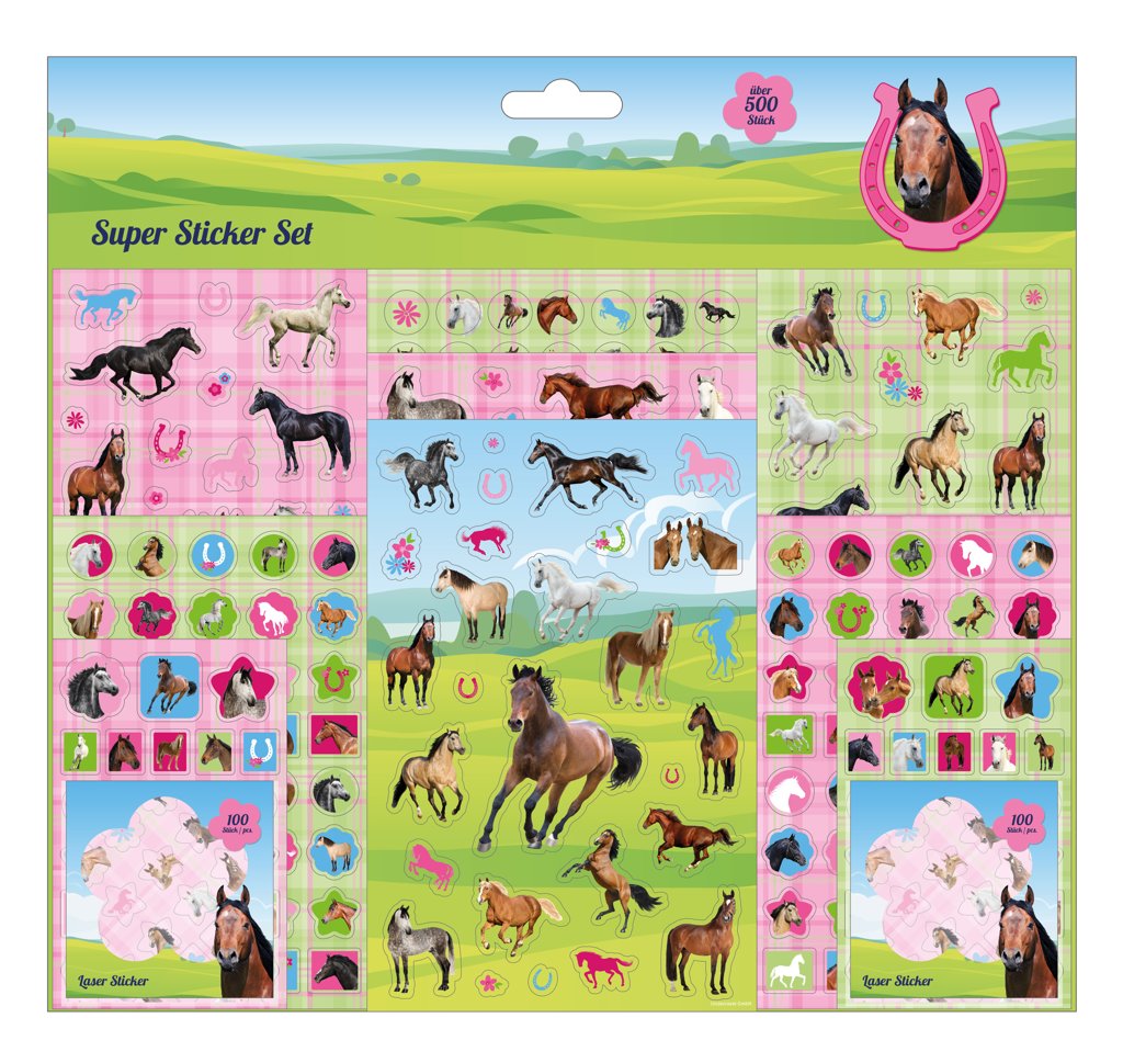 Zestaw Naklejek - Konie - 500szt. Wymarzony zestaw, bardzo starannie wykonanych, naklejek - metalicznych, papierowych, laserowych i wypukłych - 11 arkuszy /500 szt./. Zabawa - niespodzianka. Przyklej je gdziekolwiek chcesz, np: na zeszycie, piórniku, torbie, ale też zwłaszcza laserowe - na rowerze, telefonie, lub deskorolce. Ozdobiony grafikami Koni, prezentuje się bardzo oryginalnie. Dzięki uroczym bohaterom niekończąca się zabawa może być fajna. Zestaw fantastycznych różnorodnych naklejek - 500 szt. Zestaw naklejek o różnym rozmiarze, z różnych materiałów Wszystkie przedstawiają wizerunki Koni. 4 arkusze naklejek metalicznych. 1 arkusz naklejek papierowych. 2 zestawy naklejek laserowych pokrytych wzorem oraz specjalną powłoką, która pod wpływem światła ukazuje mieniące się wieloma kolorami kształty. Przypominają efekt hologramu. 4 arkusze naklejek wypukłych, wielokrotnego użytku z wizerunkami bohaterów. Wymiary arkuszy: 24 cm lub 27 cm lub 30 cm x 16 cm x 0,1 cm, i wiele innych. Wymiary opakowania: 41 cm x 38 cm x 0,5 cm. Uwaga: produkt przeznaczony dla dzieci powyżej 3 lat. Ryzyko zakrztuszenia.