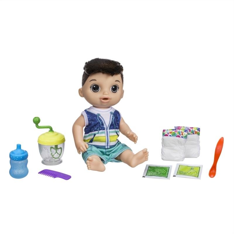 Tmavovlasý chlapec s mixérem nabízí dětem nový zábavný způsob, jak se postarat o svou panenku. Chlapeček pije vodu a jí pro něj speciálně připravené jídlo. Stačí v mixéru (součástí balení) smíchat brokolicový či hruškový prášek s vodou a ihned je na světě skvělé jídlo pro vašeho chlapečka. Stačí otáčet rukojetí a mixér vše spolehlivě promíchá. Pak můžet chlapce po lžičkách nakrmit a dát mu napít z lahvičky. Když se pokaká, je čas vyměnit plínku. V balení je panenka chlapečka s odnímatelným oblečením, mixér, lžička, lahvička, dva sáčky s jídlem, 2 plenky a hřebínek.