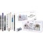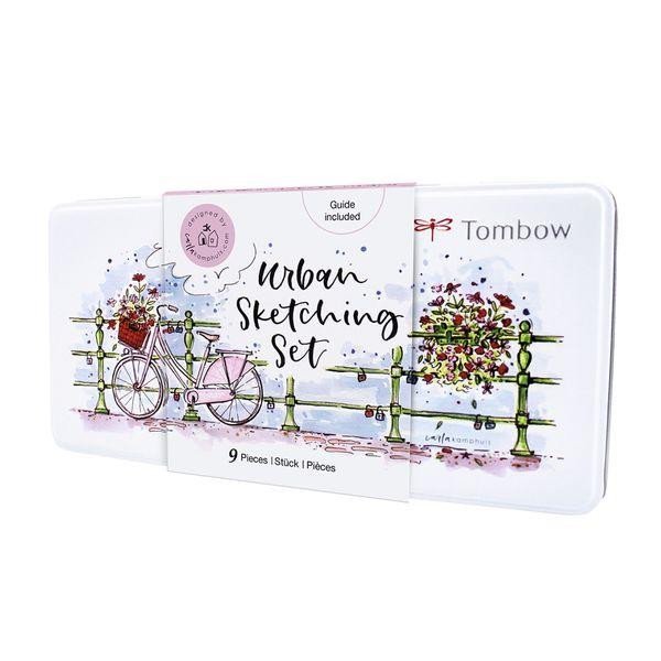 Základní výbava Urban Sketching Set obsahuje devět sladěných produktů Tombow, které lze vzájemně skvěle kombinovat. Sada také obsahuje pokyny krok za krokem s vysvětlením a tipy od umělkyně Carla Kamphius. Urban sketching popisuje zvláštní druh kresby, ve které zvěčňujete své bezprostřední okolí na papír. Většinou se jedná o městské pohledy, menší města či vesnice. Abyste své produkty na cestách neztratili, obsahuje sada láskyplně navrženou a vysoce kvalitní kovovou krabičku, do které lze perfektně uložit všechna vaše pera. Sada obsahuje: 1x tužka MONO 100: pro zhotovení předkreseb a skic. 1x guma MONO XS:Pro pohodlné mazání s nejlepším výsledkem mazání. 1X štětcové pero Fudenosuke s měkkým hrotem: Elastický hrot umožňuje vytvářet různé šířky čar. Díky tomu je styl kreslení útržkovitý.2x Tombow ABT Dual Brush Pen s jemným hrotem: Sada obsahuje barvy Deep Blue (565) a Burnt Sienna (947). Inkoust je na vodní bázi. 1x plnitelný štětec na nádržku na vodu (prázdný): Pro nabírání a malování vodou ředitelných barev pera ABT Dual Brush Pen 2x barevná tužka Irojiten: Sada obsahuje barvy Verdigris (DL5) & Almondblossom (VP2). Olovo je na bázi vosku. IRJOITES lze použít pro barvení kresby, pro vrstvení a mnoho dalšího. 1X Tombow ABT PRO značky Na alkoholové bázi se dvěma koncovkami: Barva komínová červená (845) je součástí sady. Ideálně se hodí k nastavení akcentů v kresbě.