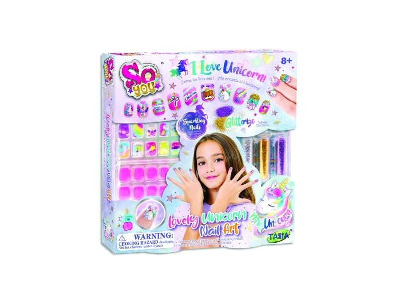 - Obsahuje sadu nalepovacích nehtů s motivem jednorožce.