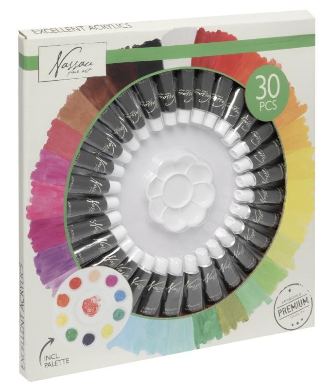 Nassau Velká sada akrylových barev 30 x 12 ml + paleta