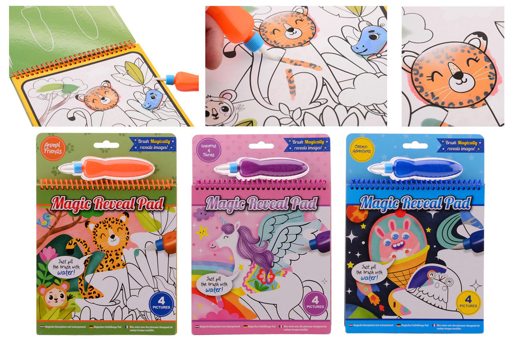 Tato sada obsahuje speciální vodní štětec, do kterého stačí nalít obyčejnou vodu. Pomocí něj mohou děti vytvářet nádherné obrázky plné vesmíru, zvířátek či kouzelného jednorožce. Vše bez špíny, bez potřeby barviček - stačí voda a fantazie! Ideální způsob, jak podpořit kreativitu, jemnou motoriku a trpělivost u dětí.