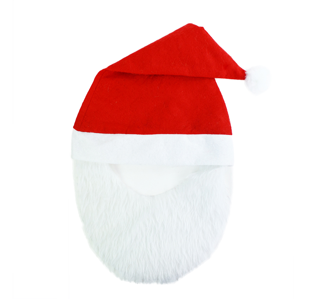 Krásná vánoční čepice s vousy a bambulkou. Čepice je vyrobena z filcu. Perfektní doplněk ke kostýmu Mikuláše nebo Santy Klause!