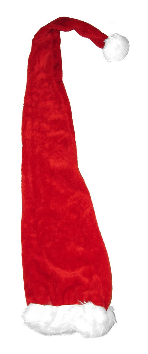 Červená vánoční čepice o velikosti 150 cm s plyšovým lemováním. Perfektní doplněk ke kostýmu nebo jen tak na vánoční večírek! číst celé