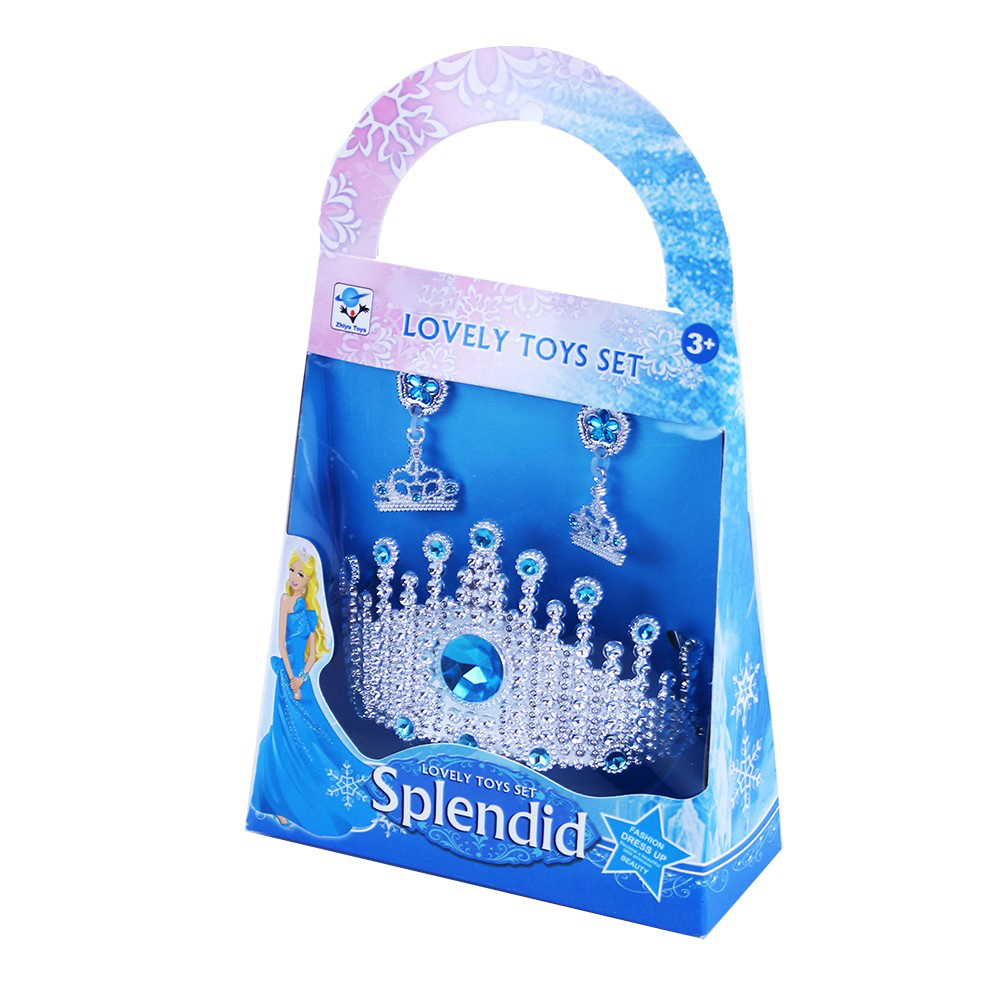 Krásná korunka stříbrné barvy pro sněhové princezny s náušnicemi. Vše je zdobeno modrými prvky. Perfektní sada ke kostýmu! Doporučeno pro děvčata od 3 let.