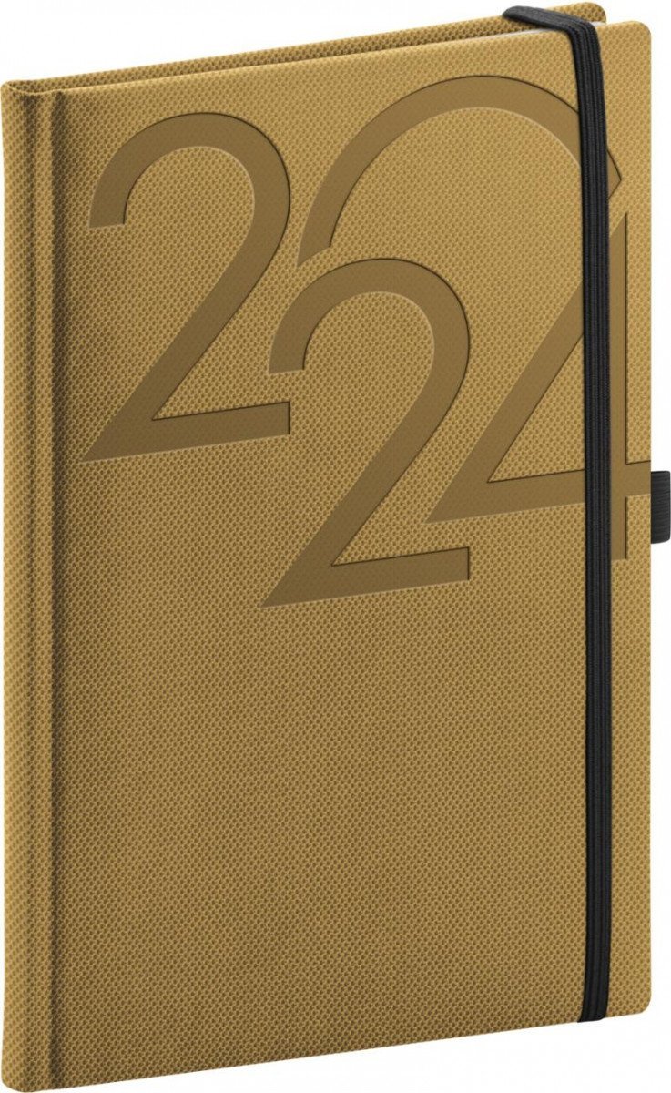 Elegantní zlatý týdenní diář Ajax 2024 v rozměru A5. Povrch s jemnou strukturou připomínající výbrus diamantu je ideální pro všechny typy ražeb. Diář má zakulacené rohy, poutko na tužku a elastickou gumičku, sloužící k pevnému uzavření. • kalendárium od prosince 2023 • měsíční plánovací kalendář 2024 • měsíční plánovací kalendář 2025 • roční plánovací kalendář 2024-2025 • pracovní plánovací kalendář • svátky České a Slovenské republiky a mezinárodní svátky • rozšířený seznam českých jmen • mapu České a Slovenské republiky • místo pro osobní údaje • textilní záložka • perforované růžky • prostor pro poznámky • poutko na pero • uzavírání na gumičku.