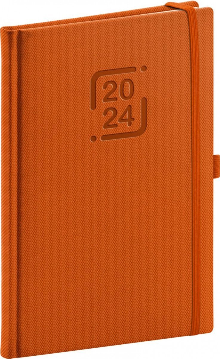 Týdenní diář Catanella 2024 v netradiční oranžové barvě. Povrch s jemnou strukturou připomínající výbrus diamantu je vhodný pro všechny typy ražeb. Diář má zakulacené rohy, poutko na tužku a elastickou gumičku, sloužící k pevnému uzavření. • kalendárium od prosince 2023 • měsíční plánovací kalendář 2024 • měsíční plánovací kalendář 2025 • roční plánovací kalendář 2024-2025 • pracovní plánovací kalendář • svátky České a Slovenské republiky a mezinárodní svátky • rozšířený seznam českých jmen • mapu České a Slovenské republiky • místo pro osobní údaje • textilní záložka • perforované růžky • prostor pro poznámky • gumička na uzavření • poutko na pero.