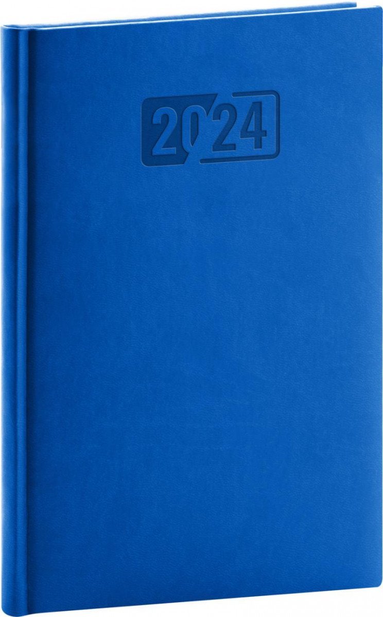 Týdenní diář Aprint 2024 v modré barvě. Klasika i elegance, nejžádanější povrch, na který lze snadno razit firemní loga s jemnou strukturou. Nová kolekce vsadila na osvědčené barvy, které doplňuje nová ražba letopočtu. Týdenní rozvrh s česko-slovenským kalendáriem a doplňkovou angličtinou, němčinou, maďarštinou a ruštinou. • kalendárium od prosince 2023 • měsíční plánovací kalendář 2024 • měsíční plánovací kalendář 2025 • roční plánovací kalendář 2024-2025 • pracovní plánovací kalendář • svátky České a Slovenské republiky a mezinárodní svátky • rozšířený seznam českých jmen • mapu České a Slovenské republiky • místo pro osobní údaje • textilní záložka • perforované růžky • prostor pro poznámky.