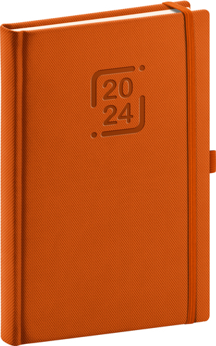 Denní diář Catanella 2024 v netradiční oranžové barvě. Povrch s jemnou strukturou připomínající výbrus diamantu je vhodný pro všechny typy ražeb. Diář má zakulacené rohy, poutko na tužku a elastickou gumičku, sloužící k pevnému uzavření. • kalendárium od prosince 2023 • měsíční plánovací kalendář 2024 • měsíční plánovací kalendář 2025 • roční plánovací kalendář 2024-2025 • pracovní plánovací kalendář • svátky České a Slovenské republiky a mezinárodní svátky • rozšířený seznam českých jmen • mapu České a Slovenské republiky • místo pro osobní údaje • textilní záložka • perforované růžky • prostor pro poznámky • gumička na uzavření • poutko na pero.