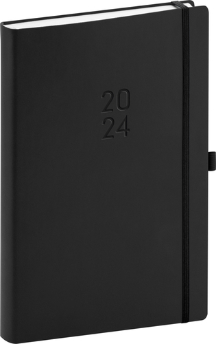 Denní diář Nox pro rok 2024 - černé desky s černou elastickou gumičkou a poutkem na pero tvoří jednolitý celek, který zaujme na první pohled. Povrch diáře je naprosto ideální pro sleporažbu loga. • kalendárium od prosince 2023 • měsíční plánovací kalendář 2024 • měsíční plánovací kalendář 2025 • roční plánovací kalendář 2024-2025 • pracovní plánovací kalendář • svátky České a Slovenské republiky a mezinárodní svátky • rozšířený seznam českých jmen • mapu České a Slovenské republiky • místo pro osobní údaje • textilní záložka • perforované růžky • prostor pro poznámky • uzavírání na gumičku a poutko na pero.