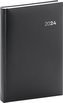 Plánovací denní diář Balacron 2024 v černém provedení, doplněný o stříbrný letopočet. Povrch diáře si získal oblibu díky kvalitnímu svrchnímu materiálu, který je extrémně odolný vůči vnějšímu poškození. Denní rozvrh s česko-slovenským kalendáriem a doplňkovou angličtinou, němčinou, maďarštinou a ruštinou. • kalendárium od prosince 2023 • měsíční plánovací kalendář 2024 • měsíční plánovací kalendář 2025 • roční plánovací kalendář 2024-2025 • pracovní plánovací kalendář • svátky České a Slovenské republiky a mezinárodní svátky • rozšířený seznam českých jmen • mapu České a Slovenské republiky • místo pro osobní údaje • textilní záložka • perforované růžky • prostor pro poznámky.