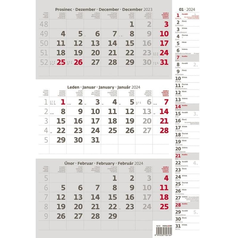Kalendář nástěnný 2024 - Tříměsíční šedý s poznámkami