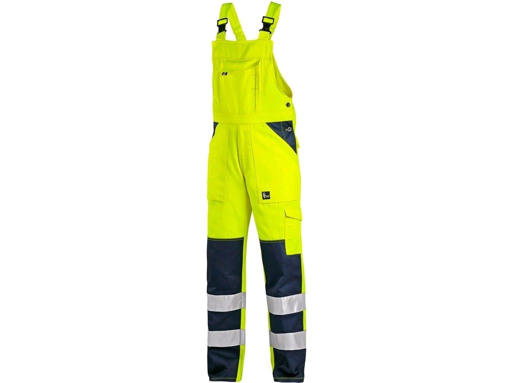 Pánské kalhoty s náprsenkou, výstražné, v zadní části pasu guma na stáhnutí, našitá kapsa na náprsence s kapsou na tužku, přední a zadní našité kapsy, boční kapsa s kapsičkou na mobil, reflexní pruhy 3M. číst celé