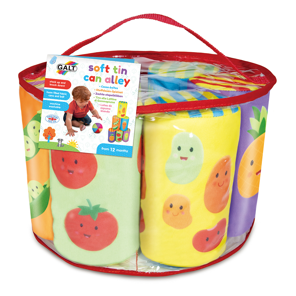 Sada 6 pěnových plechovek s rolničkami. Tyto měkké, barevné plechovky umožňují dítěti procvičit základy rovnováhy a při srážení plechovek míčkem mu zaručeně rozzáří úsměv na tváři.Baleno v praktické cestovní tašce. Lze prát v pračce.Velikost plechovky: 14 x 8 cm