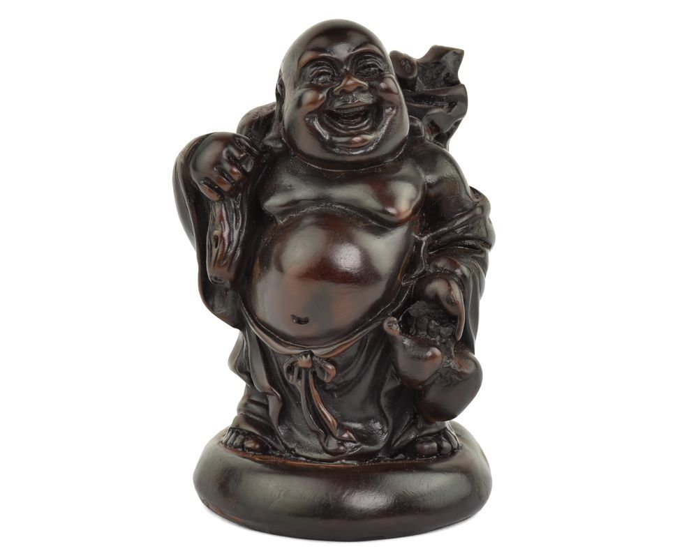 Soška z umělé pryskyřice smějícího se Buddhy, který se bývá nazýván Hotei nebo Budai. Jednalo se o tlustého mnicha žijícího v Číně v desátem století našeho letopočtu. Je považován za příštího Buddhu a zaujímá pevné místo v Buddhismu, Taoismu a Šinstoismu.Rozměr: 10,5 x 7,5 x 7,5 cmMateriál: umělá...