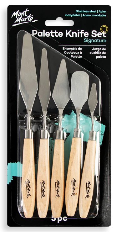 Objevte novou dimenzi malby s touto sadou nerezových špachtlí a nožů Mont Marte! Díky pěti různým velikostem a flexibilním čepelím snadno vytvoříte jedinečné textury a efekty na svém plátně.