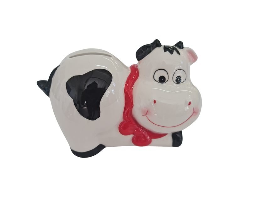 Udělejte ze spoření zábavu s touto stylovou keramickou pokladničkou ve tvaru kravičky. Je ideálním doplňkem do dětského pokoje nebo hravým motivátorem, který pomůže každému naučit se hodnotu peněz.