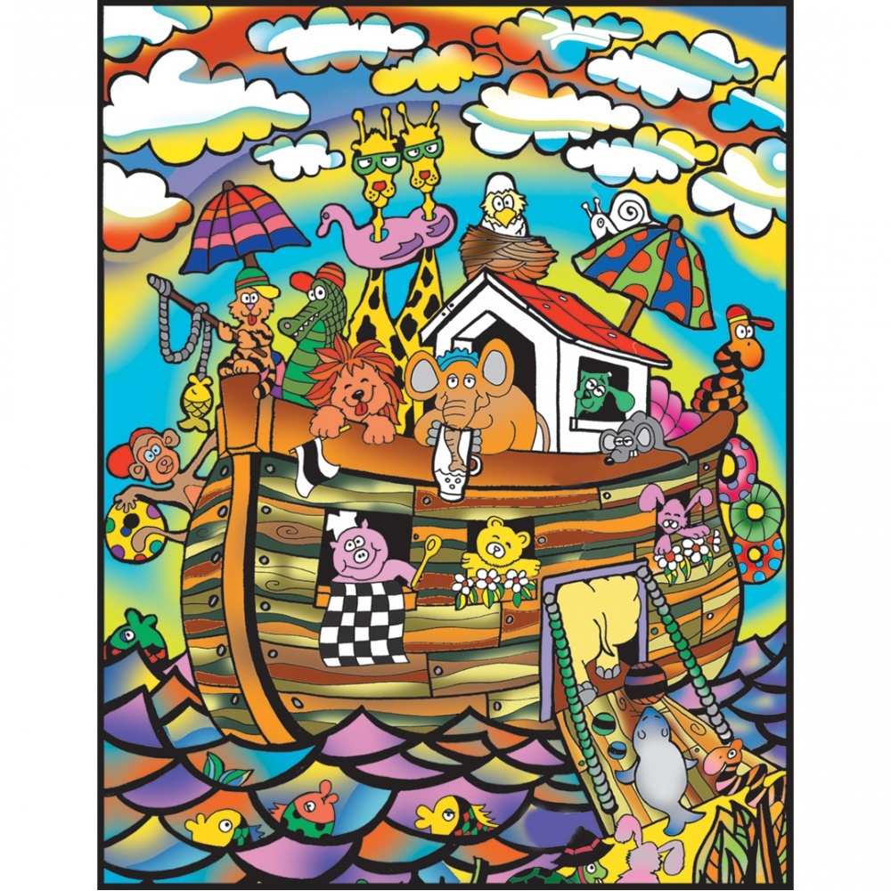 Sametový obrázek k vybarvení, motiv Noemova archa. Vybarvovací šablona je ze sametu, který usnadňuje vybarvení. Obrázek můžete vybarvit fixami, pastelkami nebo voskovkami. Okraje motivu jsou přesně vymezeny sametem a zabraňují přetahování okrajů.Obrázek je možné vybarvit dle přiloženého motivu nebo můžete popustit uzdu své fantazii.Velikost: S 21 x 29,7cm.Vhodné pro děti od 3 let.