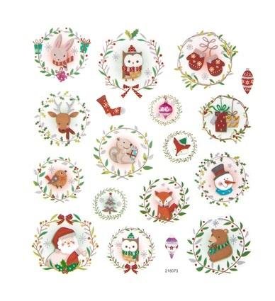 Naklejki z motywem wieńców i uroczych zwierzątek to doskonały dodatek do prac tworzonych przez dzieci oraz wszelkich projektów scrapbookingowych, jak kartki okolicznościowe, pakowanie prezentów i ozdoby na choinkę.
