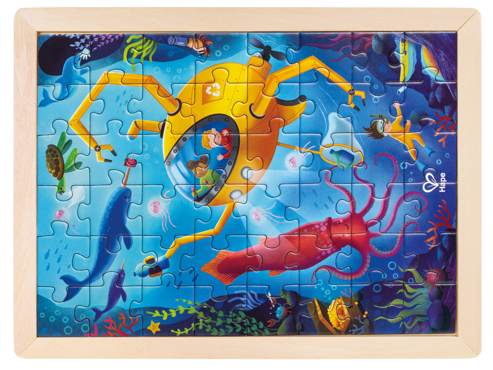 Ponořte se hluboko do neprobádaných vod s touto 48dílnou skládačkou. Podvodní scéna obsahuje hlubinnou úklidovou četu v robotické ponorce, narvala, obří chobotnici a spoustu malých olihní. Na zadní straně je nenabarvená šablona, ??kterou si můžete vytvořit vlastní puzzle. Balení: 26,2x1,4x29,7cm....