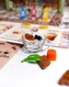 - Obsah balení: 1 deska přísad, 4 desky hráčů, 16 dílků vylepšení, 6 figurek, 2 zásobníky na přísady, 80 karet objednávek, 12 šálků, 102 přísad, 15 žetonů keksíků, 1 žeton začínajícího hráče