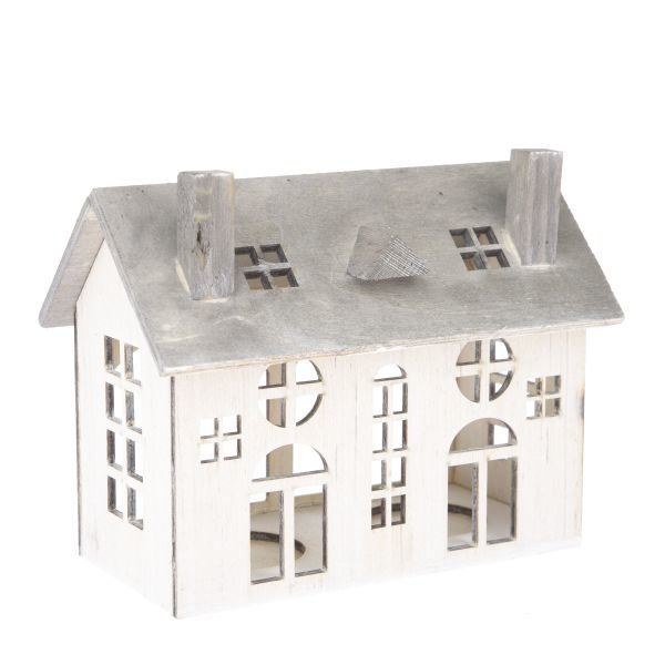 Dřevěný domek s elektronickou svíčkou uvnitř - bílý, 0/21