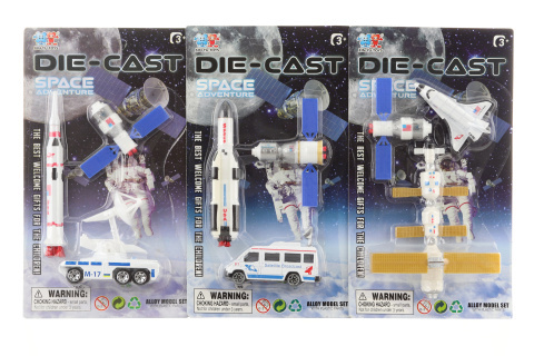 Vesmírná sada. 3 druhy. Materiál kov, plast. Rozměry balení cca 13 x 23 x 4 cm. Věk 3+ číst celé