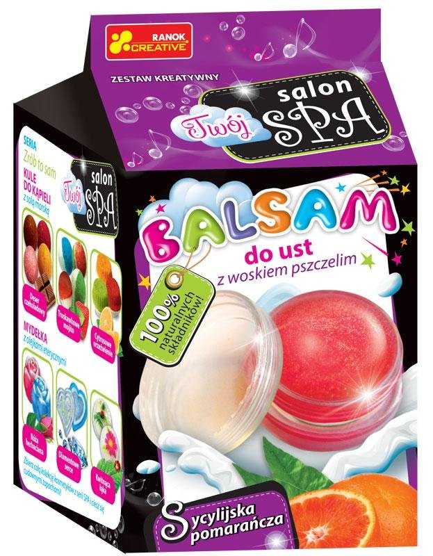 Balsam do ust jest niezastąpionym kosmetykiem. Odżywia, nawilża i nadaje ustom zdrowy wygląd. Idealnie chroni skórę ust przed wysychaniem i pierzchnięciem. Balsam to nie tylko sposób na piękne usta. Może także stanowić wspaniały prezent dla rodziny lub przyjaciół. W zestawie: - masło kakaowe - olej - wosk pszczeli - olejek eteryczny - pomarańcza - słoiczek na balsam - plastikowy kubek - plastikowa łyżeczka - drewniany patyczek - barwnik spożywczy - szczegółowa instrukcja Zabawka dla dzieci
