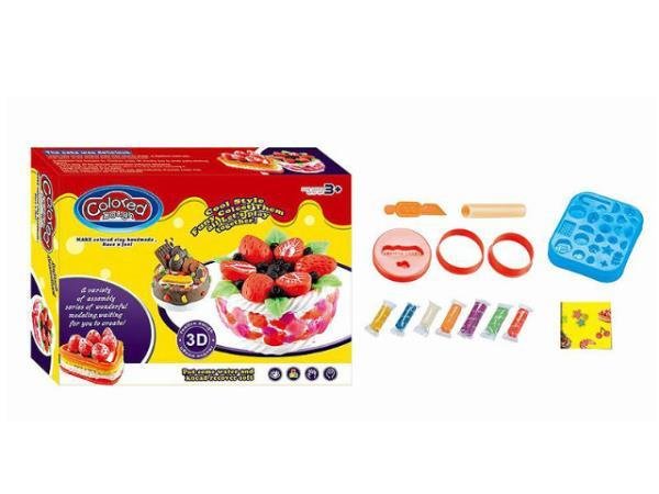 Zestaw do tworzenia tortów lub ciast. W skład zestawu wchodzi: arkusz z foremkami, nożyk, wałek, ranty, foremka z napisem Happy Birthday, ciastolina. Foremki mają różne formy. Jest 7 kolorów ciastoliny, które znajdują się w woreczkach. Mieszaj je na różne, inne kolory. Modelina jest miękka i miła w dotyku. Twórz z niej tort lub ciasto i co jeszcze chcesz, według upodobania. Zestaw rozwija kreatywność oraz zdolności manualne. Wymiary opakowania: 25x18x5cm Wiek: 3+
