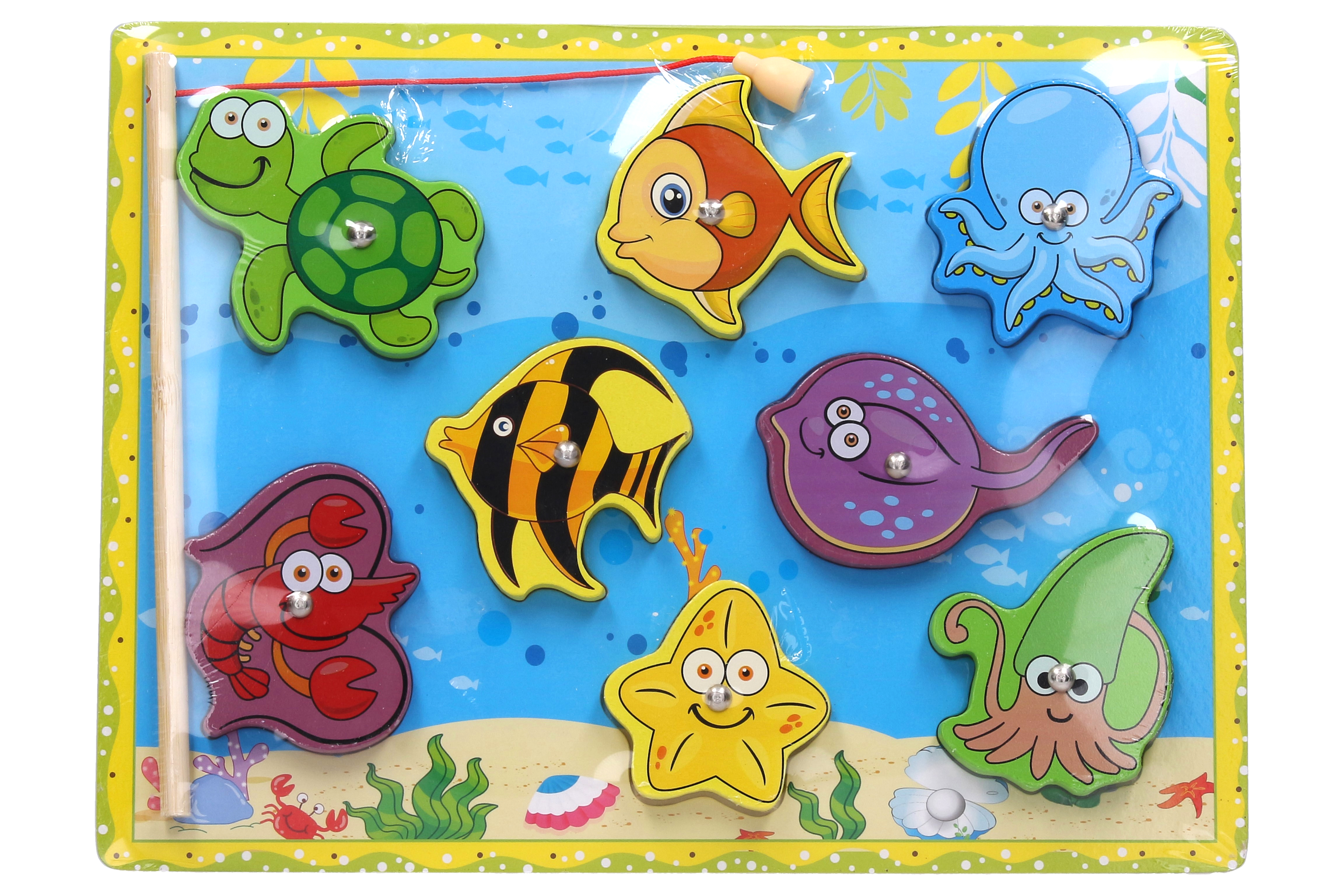 Rybaření magnetické dřevěné. Rozměry 30x22,5 cm. Obsahuje jednu udici, 8 mořských zvířátek. číst celé