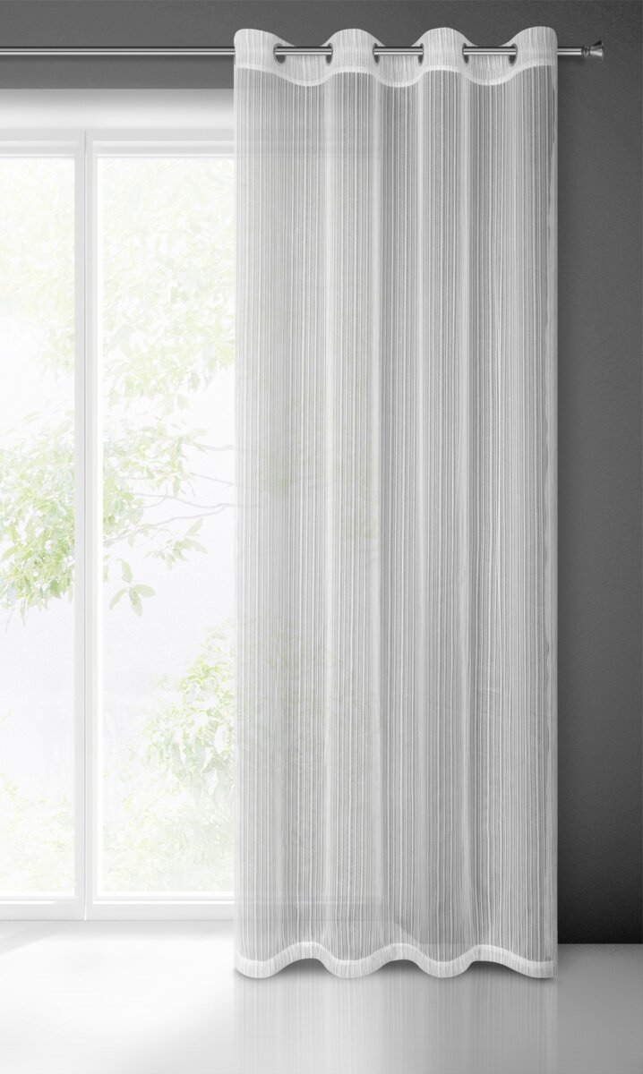Kvalitní hotová dekorační záclona vyrobená ve vysoké jakosti v moderním a trendovém provedení do ložnice nebo obývacího pokoje o rozměru 140x250 cm s kroužky pro tyčovou gárnyž. 1 kus v balení. Záclona je vyrobena v lesklém provedení s proužky. číst celé