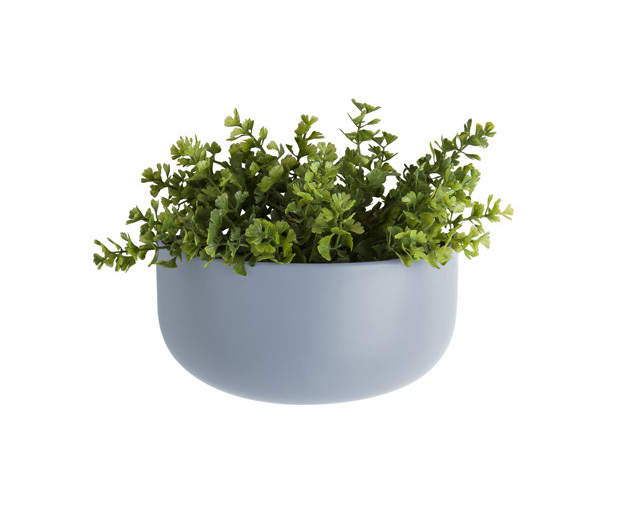 Nástěnný matný světle modrý keramický květináč.