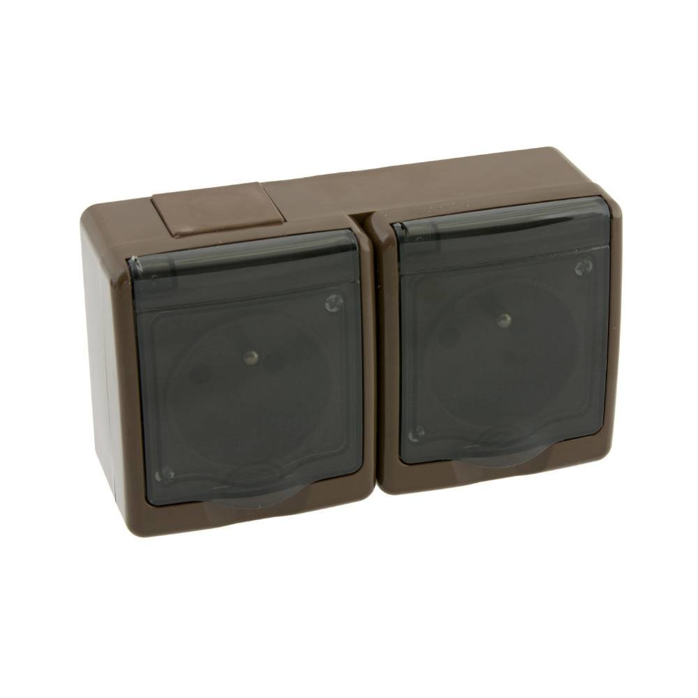 Zásuvka dvojnásobná, hnědá s kouřovým víčkem 16A, 250 V~, krytí IP44 číst celé