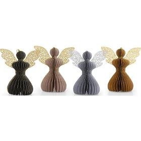 Sada papírových ozdob ANDĚLÉAndělé skládané ve tvaru včelí plástve s třpytkami na okrajíchMateriál: papírVelikost anděla: 12 cmBarva: černá, růžové zlato, kaštanová, hořčicová a stříbrná.Použití pouze ve vnitřních prostorách