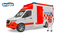 Průkopnický, efektivní, spolehlivý - tak Mercedes Benz popisuje nový Sprinter. I v nejnovější generaci zůstává všestranným a všeobecně oblíbeným dopravním profesionálem. Řadu záchranných vozidel nyní doplnila nová sanitka MB Sprinter. Pokud dojde na záchrannou misi, nesmí chybět toto vozidlo, které je vybaveno množstvím funkcí. Zdravotník, který je součástí dodávky, nastupuje do kabiny řidiče otevíratelnými dveřmi. Díky novému integrovanému světelnému a zvukovému modulu s různými sirénovými signály a světelnými funkcemi se sanitka dostane na místo události rychle a bezpečně. Malý záchranář má přístup do ultramoderního ošetřovacího prostoru otevíracími zadními dveřmi a bočními dveřmi a také odnímatelným střešním modulem. Na výškově nastavitelných nosítkách, které lze vytáhnout a zase zasunout, je prostor pro každou figurku bworld pro ošetření a lze je bezpečně přepravovat. Měřítko: 1:16. Baterie: 3 x AAA jsou součástí výrobku. Rozměr balení: 19,5 x 27 x 52 Věk: 4+