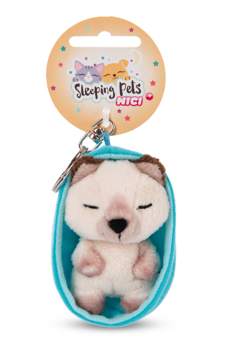 NICI klíčenka Spící kočička 8cm hnědá Siamská, košík modrý
