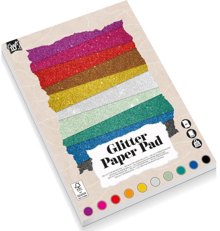 Třpytivé papíry A4, 10 ks, 200 g/m2 - mix barev v trhacím bloku
