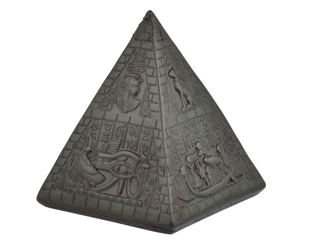 Pyramidy jsou vnímány jako symbol cesty člověka ke světlu a pomáhají mu odprostit se od zákonů fyzického světa. Jejich tvar umožňuje kumulovat energii a následně vyzařovat do vesmíru.Rozměr: 8 x 7 x 7 cmMateriál: umělá pryskyřice