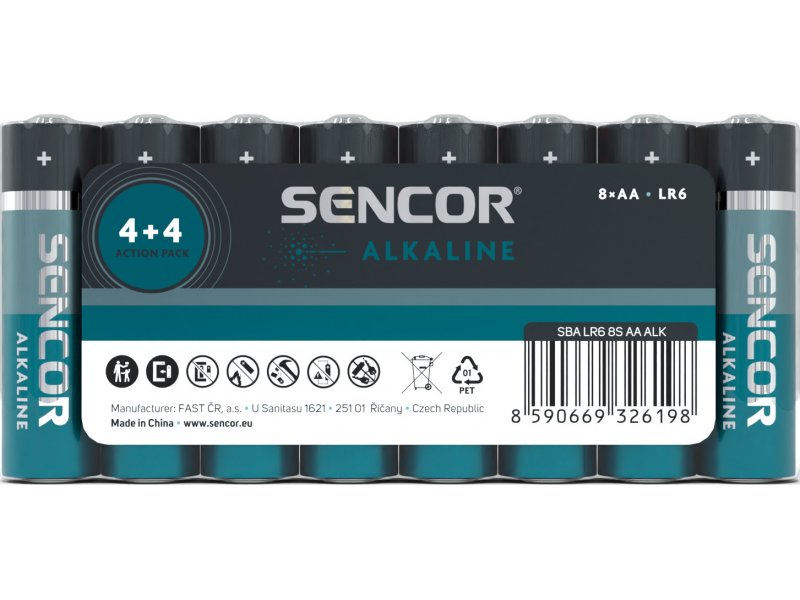 Jednorázové tužkové baterie AA (LR6), alkalický článek, napětí 1,5 V.Neobsahují kadmium, rtuť ani olovo.Balení / 8 ks. číst celé