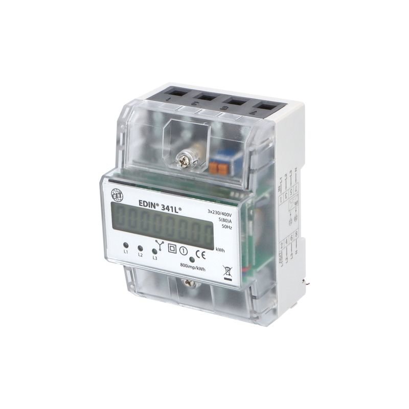 Elektroměr EDIN 341L je třífázový přístroj s LCD displejem určený k měření činné elektrické energie ve vašem domově nebo provozu. Umožňuje přesné sledování spotřeby již od velmi nízkých proudů (0,25 A) až do 80 A. Díky podsvícenému displeji snadno odečtete aktuální hodnoty i za horších světelných podmínek. Elektroměr je navržen pro přímé zapojení do elektrického obvodu a slouží především k podružnému měření spotřeby jednotlivých spotřebičů či skupin zařízení.