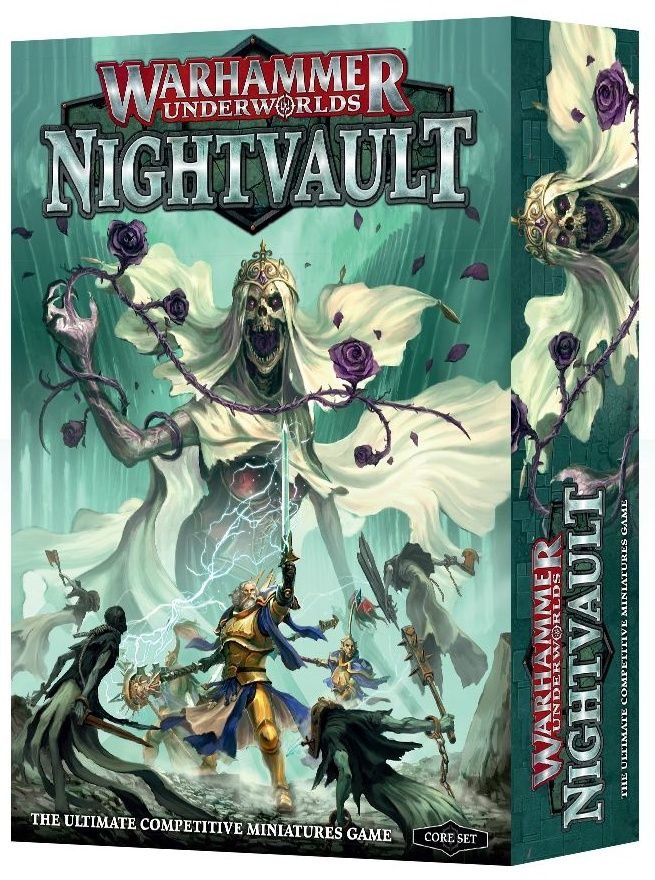 Warhammer Underworlds: Nightvault je akční bojová hra pro dva hráče. Vybudujte svojí válečnou skupinu, postavte balíček a porazte své soupeře. Shadespire byl kdysi městem divů a kouzel, obchodní metropole, jejíž vládci vzdorovali smrti, na zuřivost Nagashe. Během výšky síly města byli soupeři, zloději a budoucí dobyvatelé zablokováni v rozlehlém žaláři známém jako Nightvault. Po pádu města, Nagash zlomil otevřené řetězy, které vázaly spoutané duchy uvnitř a daly jim zbraně, aby zamrzly srdce živých a dostatečné paměti z jejich muk, aby je naplnily nenávistí a žárlivostí. Spektrální mrtvý byly potěšení z šance způsobit tuto nenávist vůči živým a na ulicích Shadespire odrážejí zvuky děsivých výkřiků a krutého, výsměšného smíchu ... Hra v Warhammer Underworlds, vy a váš soupeř vyberete válečnou skupinu - 2 jsou zahrnuty v této krabici - a vybudovat balíček síly a objektivních karet. Poté, co umístíte svou bojovou skupinu na šestihrannou hrací desku, střídáte akce - pohyby a útoky - dokud se nezahrají 3 fáze. Mezi akcemi můžete použít výkonové karty, abyste mohli představit efekty a reakce, které mohou převrátit boj ve váš prospěch; vybudovat nejlepší balíček, který můžete a pomocí mazanosti nasadit tyto schopnosti v perfektní chvíli je tajemství zvládnutí hry a ovládnutí svého nepřítele. Pouhé zničení protihráčové válečné skupiny nezaručí vítězství - zachytit cíle, postavit si zemi, dělat ty nejlepší taktické volby a nasadit správné karty ve správný čas, získá vám body slávy, které musíte vyhrát! Jakmile budete obeznámeni s pravidly, hry budou trvat asi 30 minut - budete mít vždy čas na odvetu. V krabici Všechno, co vy a kamarád potřebujete k hraní her Warhammer Underworlds, je zahrnuto v této krabici. Obsahuje: - Stormcast Eternals warband - Stormsire\'s Cursebreakers - sestavené ze 3 push-fit, modré plastové miniatury (Rastus Charmed, Ammis Dawnguard a vůdce, Averon Stormsire); - Nighthaunt warband - trny Briarqueenu - tvořené 7 plastovými miniaturami (The Ever-hanged, Varclav krutý, vůdce Briar Queen a 4 Chainrasps, kterým Nagash nedokázal důstojnost jmen ). Obě tyto warbands jsou snadno sestavitelné, bez potřebného lepidla a komplexního průvodce, který je snadno ovladatelný; - a další… Další pravidla Warhammer Underworlds má intenzivní, rychlé a zábavné jádro sady pravidel, ale kniha obsahuje řadu doplňků - nové herní režimy, soutěžní pravidla a pravidla pro více hráčů: - Vyrovnané hry: určeno pro soutěžní hru, je to soubor pravidel, hrací pole v nejvyšší míře - ideální pro rychlé, přátelské soupeření a turnaje; - Hry pro více hráčů: další pravidla, která vám umožní spojit 2 základní sady Warhammer Underworlds a vytvořit hry pro 3 nebo 4 hráče s jasnými pravidly pro řešení útoků a úprav vítězných podmínek. Zahrnuje také slovníček pro rychlou a snadnou orientaci a ukázkovou kapitolu The Mirrored City, román černé knihovny v Shadespire.