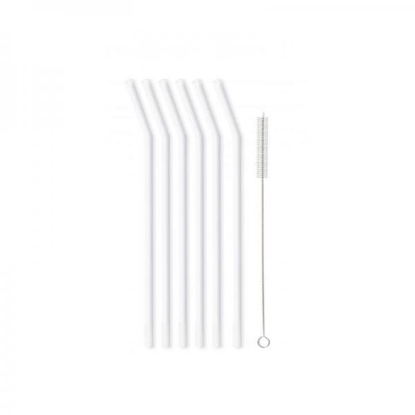 Skleněná brčka v bílé barvě, zahnuté: