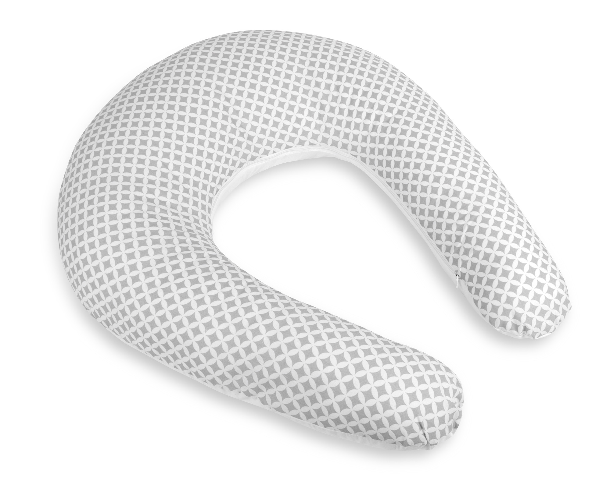 Kojicí polštář s povlakem na zip - kosočtverce - šedá, bílá - po obvodu 180 cm