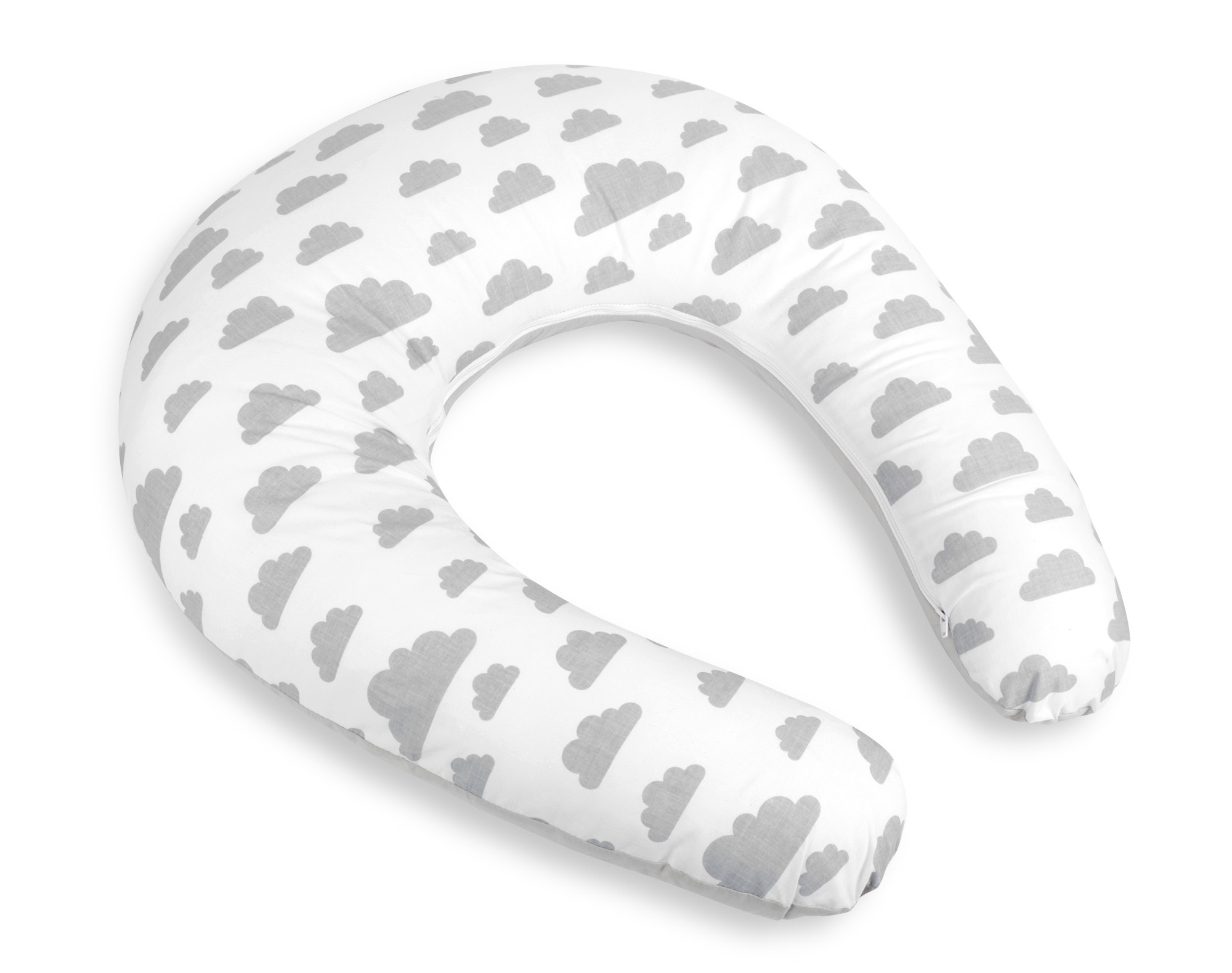 Kojicí polštář s povlakem na zip - mráčky - šedá, bílá - po obvodu 180 cm