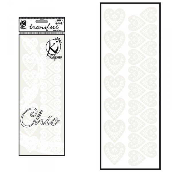 Samolepka na textil sametová, zažehlovací, 10x30 cm, motiv COEUR, bílá